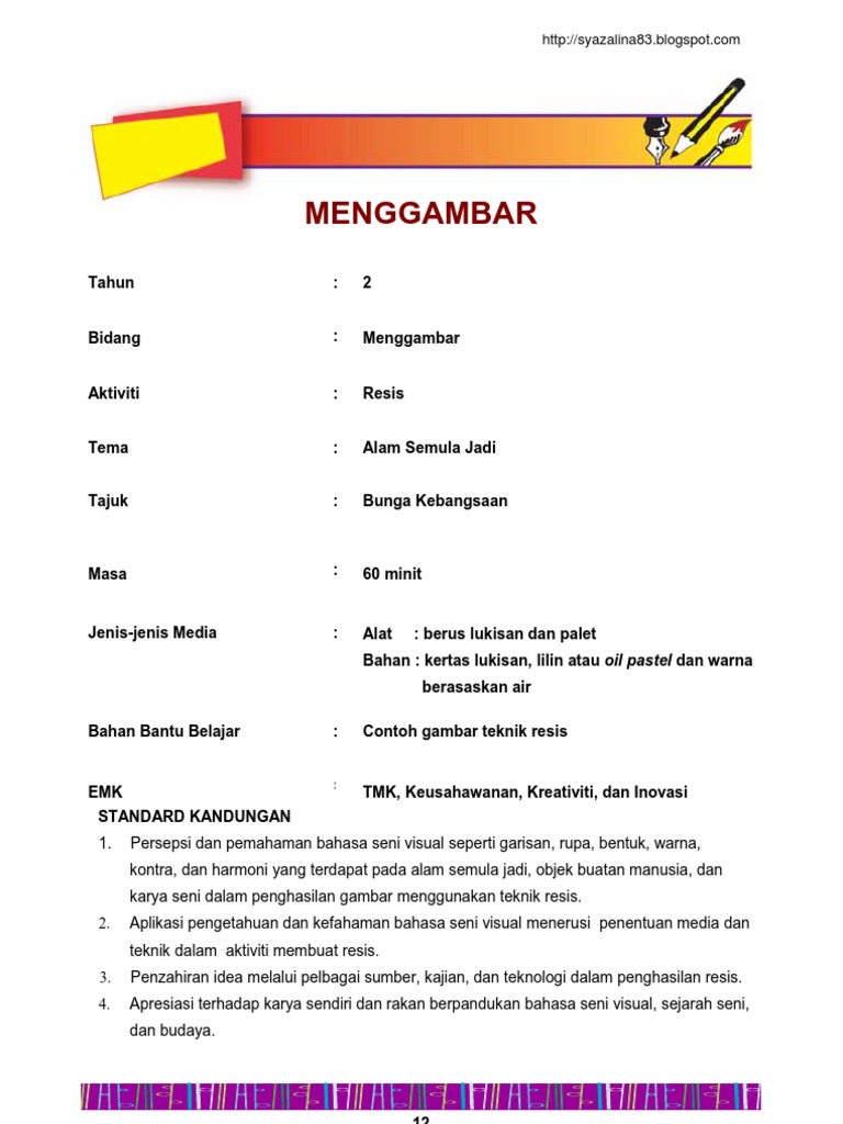 Related : Dunia Seni Visual Tahun 2 - Aplikasi pengetahuan dan kefahaman bahasa seni visual menerusi penentuan media dan teknik dalam aktiviti seni..