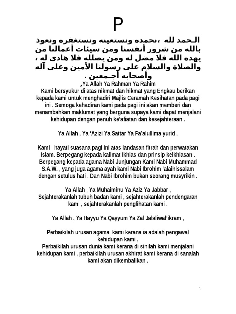 Doa kesihatan diri allaahumma 'aafinii fii badanii, allaahumma 'aafinii fi sam'i, allaahumma 'aafinii fii bashari. Doa sebelum berhubungan badan—umat muslim memiliki tata cara dan adab berhubungan badan (berhubungan intim antara suami dan istri) sesuai dengan kaidah yang dimulai dengan doa. Download and convert doa kesihatan tubuh badan keseluruhannya to mp3 and mp4 for free. Kesehatan merupakan sesuatu yang sangat penting bagi umat manusia. Karena di dalam pelaksanaan puasa terdapat kesehatan untuk badan sekaligus akal, menariknya puasa juga merupakan vitamin untuk hati sebagaimana makanan memberikan vitamin kepada tubuh. Ya allah, sejahterakanlah tubuh badanku, ya allah tubuh badan yang kuat, pendengaran yang jelas dan penglihatan yang tajam untuk menjalankan rutin harian terutama sekali dalam beribadat. Buah dan sayur untuk mengatur berat badan buah dan sayur yang rendah kalori dan tinggi serat dapat membantumengendalikan berat badan. Usahakan kalian download sebagai review saja, belilah cd original atau kalian beli secara online. Sedemikian besar perhatian islam terhadap kesehatan badan pemeluknya ya allah, sehatkanlah tubuhku, sehatkanlah pendengaranku, sehatkanlah penglihatanku, tidak ada tuhan selain engkau. Di dalam islam memang tidak diperbolehkan melakukan diet yang sangat ketat karena hal itu dapat mengganggu kesehatan. Doa agar selalu diberi kesehatan. Doa kesihatan tubuh badan ustaz manis دعاء کصيحتن توبوه بادن. Savesave doa sihat tubuh badan for later.