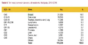The 2015 national cancer registry will be reporting on cancer incidence of malaysia.